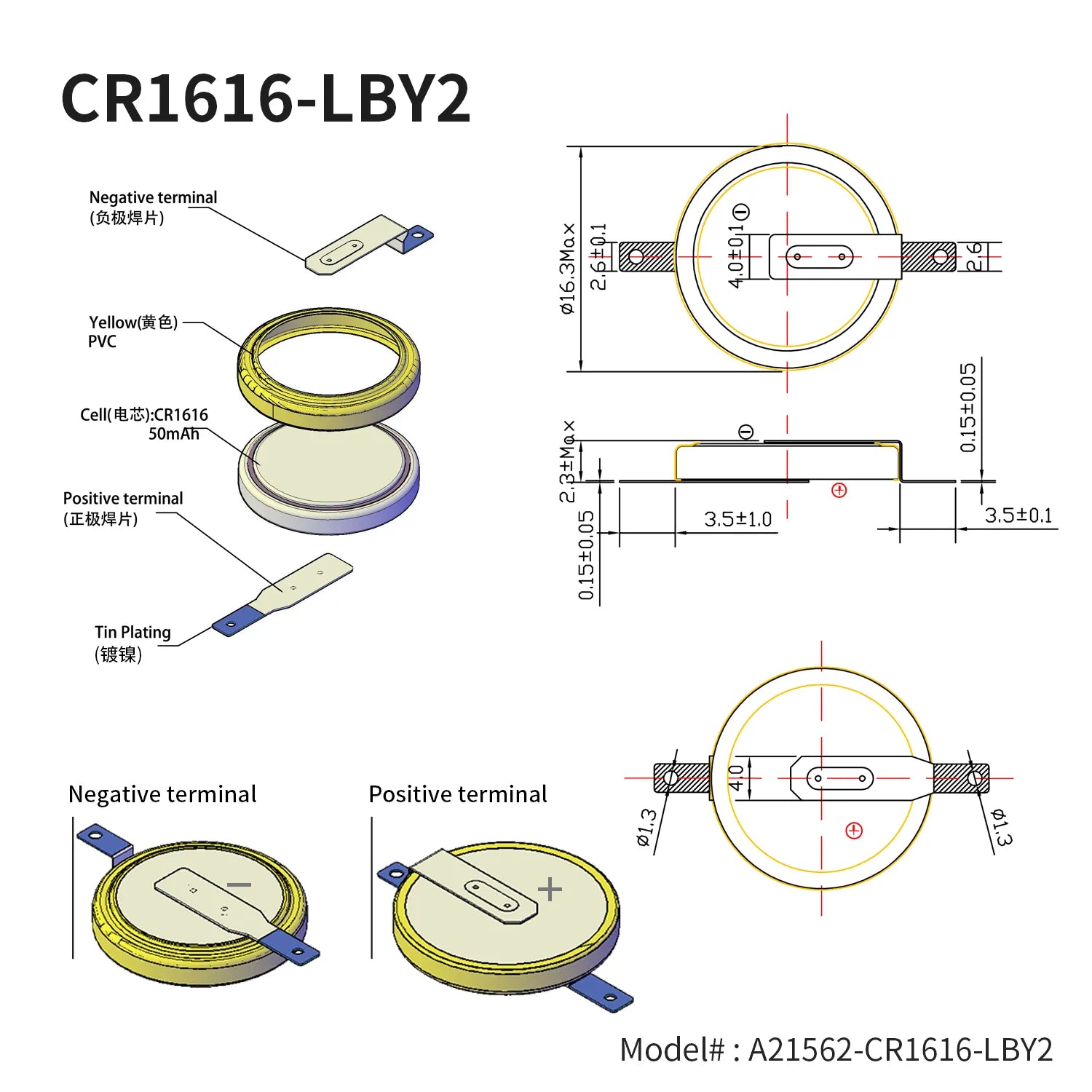 Battery With Solder Tabs CR1616 CR2025 CR2032 Battery Compatible with Gameboy